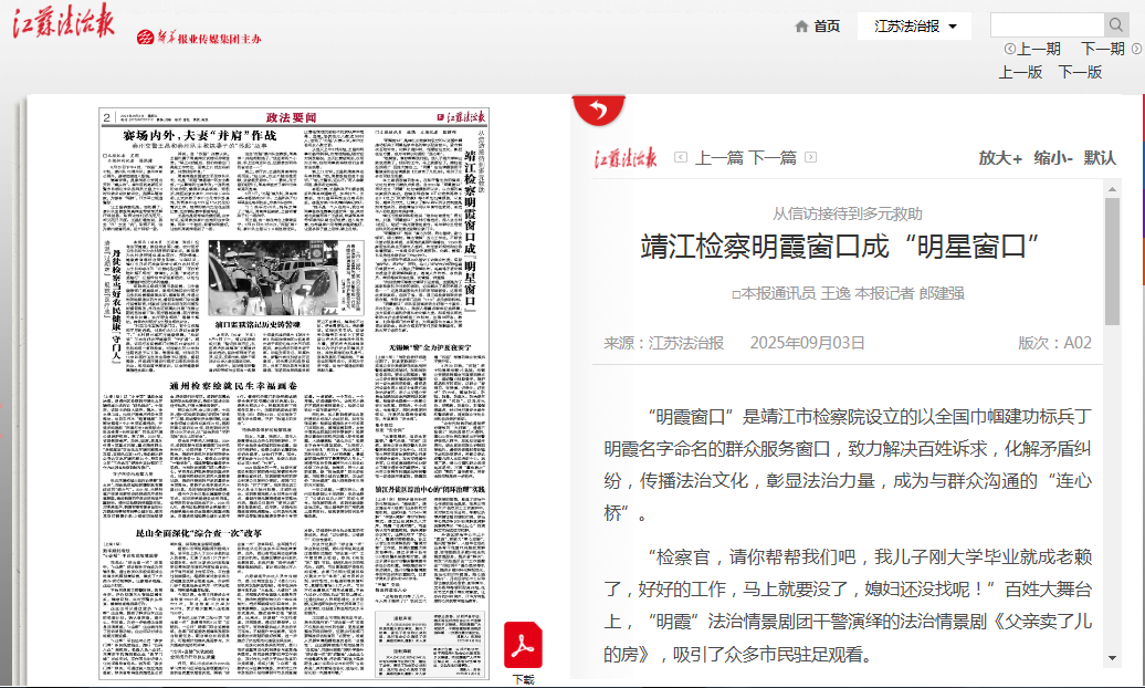 9月3日,《江苏法治报》报道靖江市检察院“明霞窗口”相关做法。