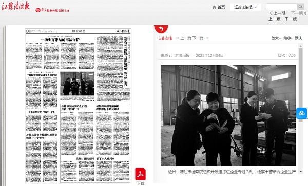 12月4日,《江苏法治报》报道靖江市检察院开展法治宣传相关做法。