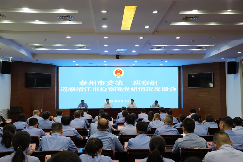 根据泰州市委巡察工作领导小组的安排,2025年9月24日,泰州市委第一巡察组向靖江市检察院党组反馈巡察情况。泰州市委第一巡察组组长陆宝存传达泰州市委书记专题会议精神并向靖江市检察院党组领导班子反馈巡察情况,靖江市委常委、政法委书记史骥涛出席会议并讲话,靖江市检察院党组书记、检察长冒金山主持会议并作表态发言。
